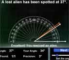 Az Aliens angles nevű játék minden nyelven kiválóan működik, nem kell hozzá angol nyelvtudás. Kell ellenben némi szemmérték, hiszen UFO-kra vadászhatunk (ITT TALÁLHATÓ az oldal, de a lapozás után itt, a TanárBlogon is ki lehet próbálni élőben :) A feladat: tippeld meg, hogy hány fokos szögben áll az UFO és lődd ki.
