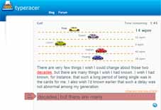 Sokunknak okoz gondot az, hogy amikor mi tanultuk a számítógépet használni, akkor senki nem figyelt arra, hogy rendesen megtanuljunk gépelni - vakon, 10 ujjal, stb. Lehet, hogy részben ezért, de egy ideje gyűjtöm azokat az oldalakat, ahol ingyen tudunk gépelni tanulni. Ilyen (angolul) a Type Racer nevű oldal (