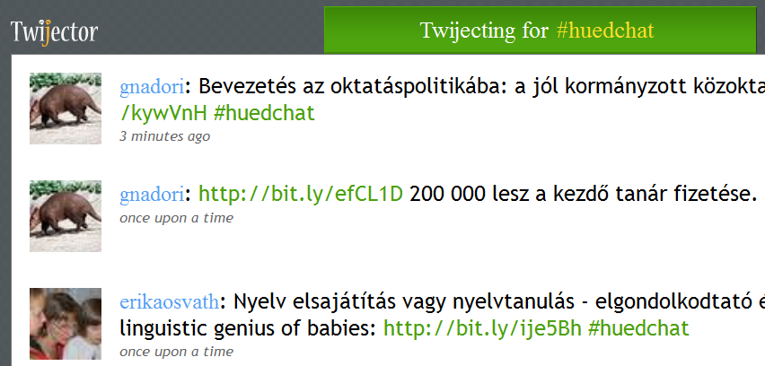 Érdekes eszköz a Twitter, kezdetben nem sok értelmét láttam, de ahogy használni kezdtem egyre több és több lehetőséget érzek benne. A rövid 140 karakteres üzenetek jók lehetnek a szakmai fejlődésre (erről szól az IKT Akadémia egyik anyaga), de felhasználhatjuk az instant kommunikációban rejlő lehetőségeket is. talán sokaknak ismerős az SMS-fal, egy kivetítő, ahol megjelennek az adott számra küldött SMS-ek, nagy rendezvényeken gyakran használják. A Twijector oldal segítségével (