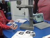 A fejlesztett valóság (AR) túl megy ezen egy lépéssel és nem új világot hoz létre, hanem hozzátesz valamit a meglevőhöz. ehhez többnyire egy kis fekete-fehér négyzetet használnak, ez a kód, ami alapján számítógép kiegészíti a látott képet. A BETT-en három ilyen izgalmas alkalmazást is láttunk, a SciMorph kicsiknek tanít a gravitációról és a baktériumokról egy kedves figura SciMorph segítségével, a kamerával őt helyezhetjük különféle környezetekbe.