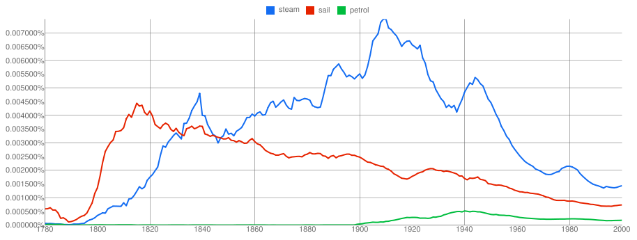 A harmadikon pedig a gőz, vitorla és benzin szavak előfordulása követhető (ITT):