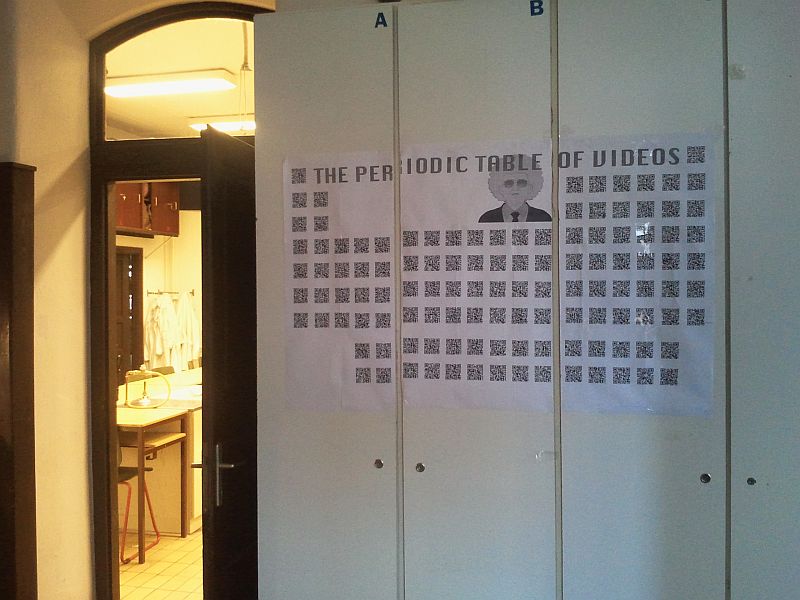 Komoly szakmai vita folyt itt a TanárBlogon arról, hogy miként van helye a QR-kódoknak az oktatásban. Főző Attila előadása a Sulinetwork konferencia TeachMeetjén adott egy ötletet, amit kipróbáltam és jelentem: működik. Előadása legvégén mutatta be a QR-kódos periódusos rendszert. Gondolom már sokan ismerik a Nottingham-i egyetem nagyszerű oldalát a videós periódusos rendszert, ahol minden elemet egy-egy rövid videóval mutatnak be (ITT VAN), a szórakoztató, de tanulságos filmecskékben magyaráznak és kísérleteznek, pont a jó arányban. A teljesen őrült tudós kinézetű professzor pedig igazi bónusz.