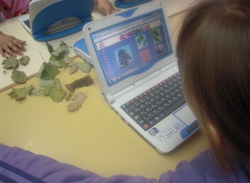 A mai óránkon is Classmate PC-t használtunk és SMART Notebook fájlt szerkesztettem a tananyaghoz. Ősszel, az osztállyal már kirándultunk a Zselici erdőkben, ahol is megfigyeltük az erdő növényeit; kéregmintát vettünk zsírkrétával; gyűjtöttük az erdő kincseit: leveleket, üres csigaházakat, kéregdarabokat, ágakat, terméseket; gipszből állatnyomokat is öntöttünk ki. Most felidéztük a látottakat: hogy mi alapján tudtuk megkülönböztetni a fákat, cserjéket egymástól; összehasonlítottuk a fás- és a lágyszárat; megbeszéltük, hogy hol helyezkednek el a cserjék az erdőben és mi volt a különbség a fák és a bokrok között. Az „erdő csoport” is beszámolt, hogy az elmúlt órán az élőhelyüket milyen növényekkel népesítették be. Ezek után két csoportot alkottunk, fák és cserjék. A gyerekek maguk között elosztották, hogy a három fa illetve három cserje közül, ki melyiket fogja kidolgozni. ERRŐL AZ oldalról képeket másoltak be a megfelelő SMART oldalukra, majd az ott elolvasott szöveg alapján a hiányos ismertető szöveget kiegészítették a saját szavaikkal. Természetesen nem ugyanazt a szöveget találta a két helyen, hisz nem lehet elég korán kezdeni annak megtanítását, hogy nem bizonyos gombkombinációkkal oldunk meg feladatokat, hanem értő olvasással feldolgozzuk az olvasottakat és így használjuk fel a tanuláshoz.