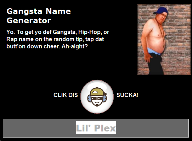 Van sok hasznos dolog az interneten. Aztán van sok érdekes dolog is. Néha a kettő találkozik, néha nem. Mivel közeledik az újév, azt gondoltuk, gondolnunk kell a szilveszterező, bulizó sokaságra is. Valami olyasmivel szeretnénk kedveskedni, amire senki más nem gondolt. Így hát összeállítottunk egy kis gyűjteményt olyan weboldalakból, ahol gengszter rap sztár neveket generálhatunk magunknak. A lapozás után az oldalak, addig is Peace out, yo, nevem: Easy T, vagy MC Chilly TB, vagy Lil Plex (Microsoft Powerpoint Plex rajongóknak), netán Brotha TP Trouble Thump ... . Hogy ezeket a neveket hol találtam, a lapozás után elmondom!
