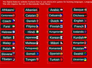 A Digital dialects (IDE KATTINTVA található) közel 50 nyelven ad interaktív, multimédiás játékokat arabtól a svédig. Természetesen van magyar is, egyszerű dolgokat lehet tanítani, megtanulni akár magyarul is.