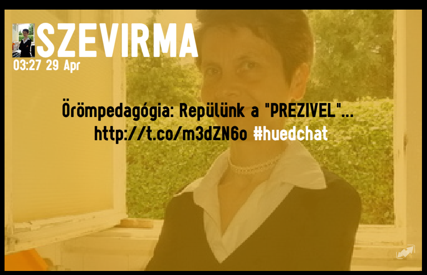 Korábban említettük a Twijector alkalmazást, ami pontosan ezt teszi lehetővé (ITT ÍRTUNK RÓLA). A NYESZE konferencián ki is próbűltuk, remekül működött. Ugyanezt tudja csak sokkal látványosabban az Another Tweet on the Wall (IDE KATTINTVA). Itt is csak meg kell adnunk a követni kívánt címkét és máris jelennek meg sorra az üzenetek. Különbség a korábbihoz képest, hogy itt a legutóbbi néhány váltakozik folyamatosan, tehát egy állandó mozgó, változó, izgalmas felületet látunk még akkor is, ha éppen nem ír senki semmi újat.