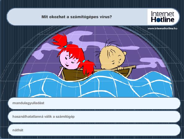 További probléma, hogy nem sokkal ezután a kvíz saját koncepcióját tekintve is összezavarodik, amikor elkezd billentyű kombinációkat kérdezni (pl. az Alt Gr + V kombinációval tudunk @ jelet írni). Lehet, hogy ez egészen konkrétan kapcsolódik az internetes biztonság kérdésköréhez, csak én nem látom a kapcsolatot. Mindez egyébként nem a rosszindulat, hanem inkább a tanácstalanság jele. Nem gondolkodtak el azon, hogy milyen koncepció alapján lenne érdemes a kérdést közelíteni, aztán valaki a 'cégnél' megkapta a feladatot, és ez lett belőle ... .